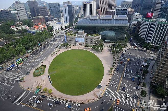 맑고 더운 날씨가 이어진 15일 서울광장이 한산한 모습을 보이고 있다. (박종민 기자)