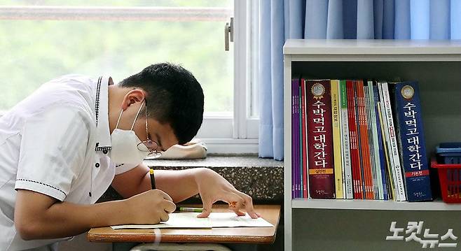 2021학년도 수능 6월 모의평가가 실시된 18일 오전 서울 여의도고등학교에서 고3 학생들이 시험을 치르고 있다. (이한형 기자)