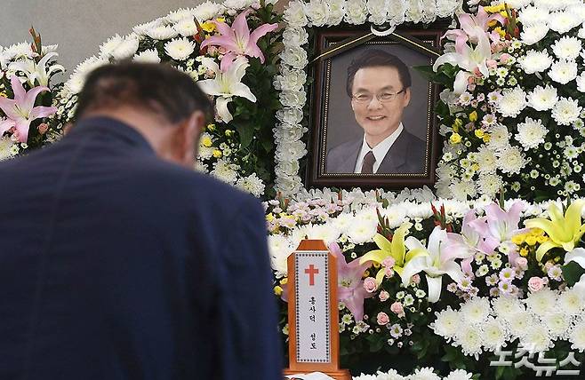 18일 오전 서울대병원 장례식장에 마련된 홍사덕 전 국회부의장의 빈소에 고인의 영정이 놓여 있다. (이한형 기자)