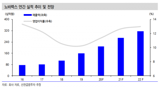 시장 고성장에 발맞춘 생산설비 증설로 내년 실적 성장도 담보돼 있다는 분석이다. 노바렉스는 현재 오송에 신규 공장 증설이 진행 중으로 오송 신공장은 2021년 1분기에 완공돼 2분기부터 본격적인 가동에 들어갈 예정이다. 윤 연구원은 “오송 신공장도 기존 오창 1·2·3 공장과 마찬가지로 연간 생산 능력이 2000억원”이라며 “신공장 증설로 생산능력이 기존 대비 2배 이상 확대돼 신규 공장 증설로 건강기능식품 고성장과 상위 주문자상표부착생산(OEM)·제조업자개발생산(ODM) 업체로 쏠림 현상 수혜를 온전히 누릴 수 있을 것”으로 전망했다. 신한금융투자는 내년 매출액은 전년 대비 28.5% 증가한 2683억원, 영업이익은 42.9% 성장한 339억원으로 추정했다.