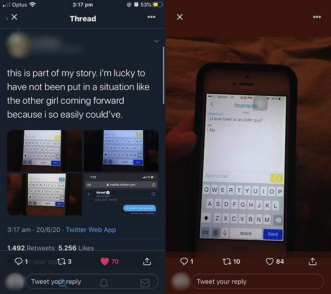 안셀 엘고트는 이같은 개비의 주장을 부인했지만, 이후 추가 폭로가 잇따랐습니다. 한 여성은 트위터에 "16살 때 안셀 엘고트로부터 '나이 많은 남자를 만나본 적 있냐'는 메시지를 받았다"며 메시지 캡처본을 공개했습니다.