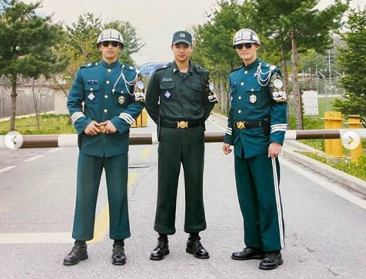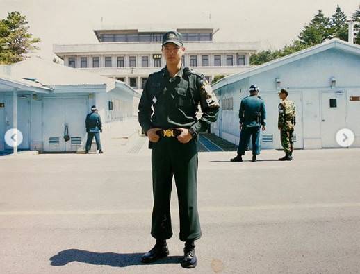 공개된 사진 속 류지광은 공동경비구역을 배경으로 군복을 입은 채 늠름한 포즈를 취하고 있다.
