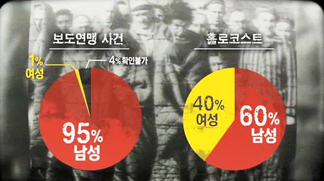 나치의 유대인 학살인 홀로코스트의 경우 40% 제주 4·3 사건 희생자의 25%가 여성인 데 비해 남성이 압도적입니다.