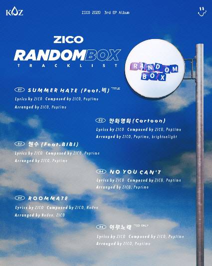 지코(ZICO)가 여름 앨범 '랜덤박스' 트랙리스트를 공개했다.