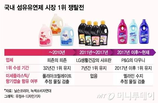 섬유유연제 브랜드 다우니가 미세플라스틱 논란의 '뜨거운 감자'인 향기캡슐을 제거한 다우니를 소리없이 출시했다. 여전히 향기캡슐은 미세플라스틱이 아니라는 입장을 고수하면서도 국내 시장 1위를 달리는 향기캡슐을 포함한 기존 제품의 대체를 시작한 것이라는 지적이 나온다.