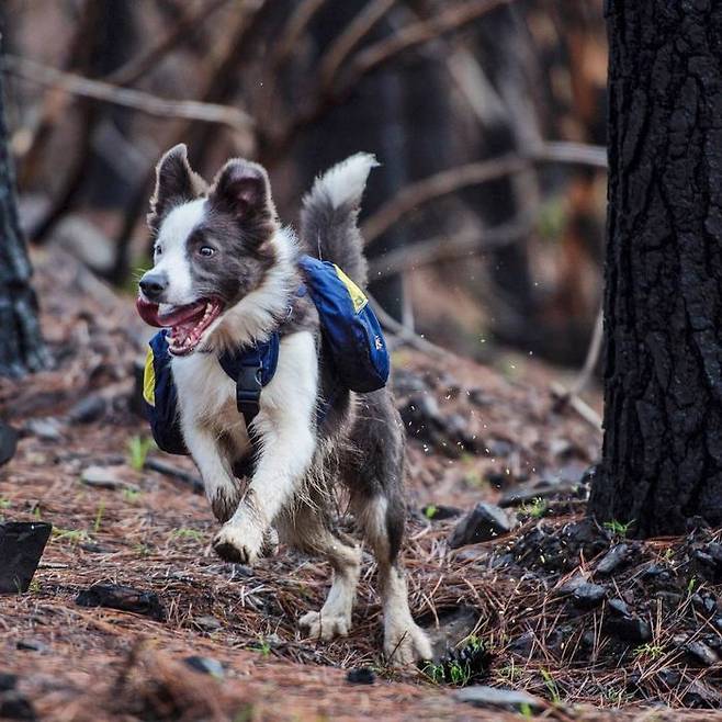 환경 NGO 'Pewos'의 대표이자 장애인 보조견 훈련사인 프란시스카 토레스 씨는 활발한 활동량을 자랑하는 보더콜리의 장점을 활용한 아이디어를 떠올렸습니다. 구멍이 뚫린 가방에 식물의 씨앗을 잔뜩 넣은 다음, 그 가방을 멘 개들이 폐허가 된 숲을 마음껏 뛰어다니게 하는 겁니다.