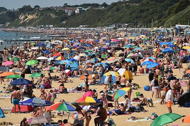 최근 기온이 현지 32.6도까지 오르는 등 더운 날씨가 계속되자 해수욕을 즐기려는 피서객들이 몰렸습니다. 외신들은 이날 수천 명의 사람들이 본머스 해변 인근에 모였다고 보도했습니다.