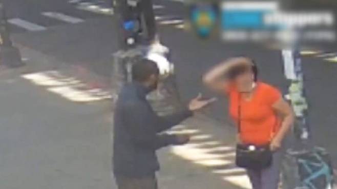 이틀 뒤에도 비슷한 범죄가 발생했는데요, 한 흑인 남성이 맨해튼 한복판에서 보행기를 끌고 마주 오던 할머니를 밀쳐 넘어뜨렸습니다.