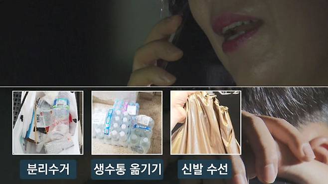 [배우 A 씨 아내 : (가족들이) 낮과 밤이 바뀌었잖아. 그래서 분리수거를 나갈 때는 못 해. 졸려가지고. 힘들어가지고]