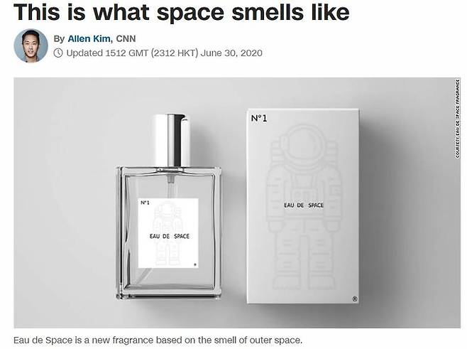 우주 냄새는 어떨까요? 오드 스페이스 홍보담당자는 CNN과의 인터뷰에서 "우주 냄새는 뭔가 묘사하기 어려운 냄새 가운데 하나지만 '독특한' 향기를 우주 향수를 통해 경험할 수 있을 것"이라고 말했는데요. 가장 특징적인 향은 '달콤'과 '매캐함'이라고 합니다.
