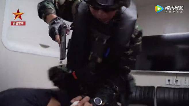 공개된 훈련 영상은 1분 50초 분량으로 헬리콥터와 군함에 탄 중국군이 의심 선박에 승선해 배에 타고 있던 도망자에게 총을 겨누고 제압하는 장면이 담겨 있습니다.