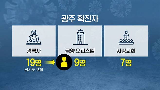 확진자가 다녀갔던 광륵사에서 시작된 집단감염은 타 시·도까지 전파되면서 모두 19명이 확진 판정을 받았습니다.
