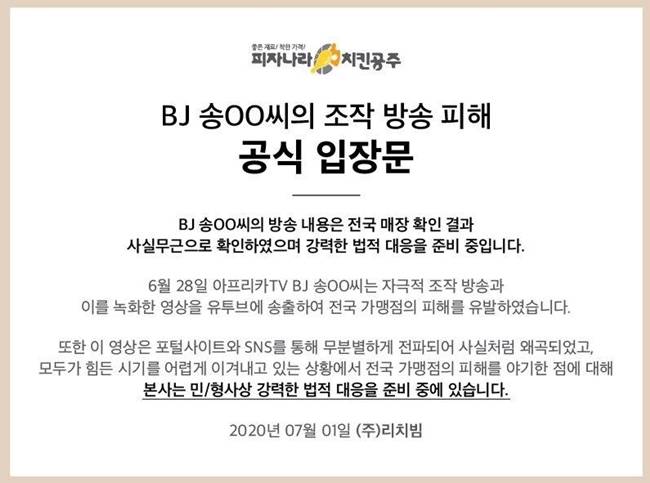 송대익의 조작 방송으로 인해 해당 브랜드는 큰 이미지 타격을 입었다. 이에 브랜드 측 역시 "전국 매장 확인 결과 사실무근으로 확인하였으며 강력한 법적 대응을 준비 중"이라는 입장을 밝혔다.