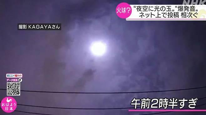 일본 상공에 유성 추정 거대한 '화염 덩어리' 출현