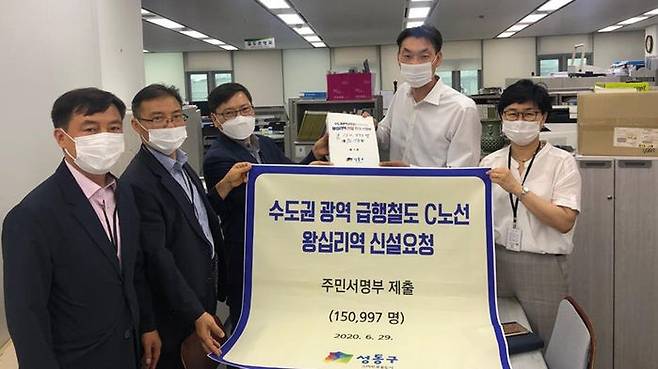 서울 성동구는 수도권광역급행철도(GTX) C 노선에 왕십리역을 신설해달라는 주민 15만997명의 서명을 국토교통부에 제출했다고 오늘(2일) 밝혔습니다.