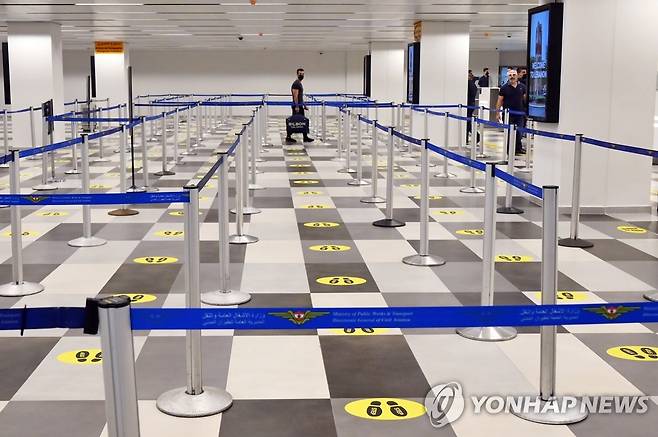 재개방된 레바논 공항의 '거리두기' 표시