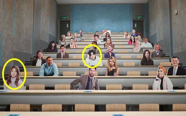 선웨이 대학교 측은 대면 수업을 받는 학생들의 안전을 위해 이 캠페인을 기획했습니다. 유명인 수십 명을 학교 곳곳 의자들에 배치해서 학생들이 자연스럽게 일정 간격 띄워 앉을 수 있도록 한 겁니다.