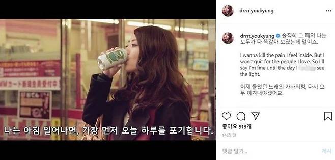 오늘(3일) 유경은 자신의 인스타그램에 "나는 아침 일어나면, 가장 먼저 오늘 하루를 포기합니다"라는 대사가 적힌 사진을 올렸습니다. 사진과 함께 유경은 "솔직히 그때의 나는 모두가 다 똑같아 보였는데 말이죠"라며 밴드 Sleeping With Sirens의 'Leave It All Behind'의 가사 일부를 올렸습니다.
