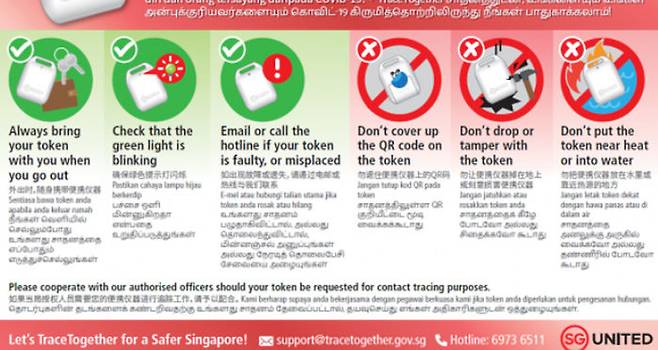 스마트폰을 사용하지 못하는 사람들에게는 별도의 하드웨어가 지급되고 있습니다. 'TraceTogether Token'이라는 손바닥보다 작은 크기의 휴대용 추적 장치입니다. 요즘 많이 이용하는 블루투스 이어폰 케이스 같은 모양을 갖고 있습니다. 위에 소개한 트레이스 투게더가 내장된 스마트폰과 블루투스 신호를 주고받으면서 동선 추적이 가능합니다. 인터넷에 연결되지 않기 때문에 데이터가 유출될 우려가 없다고 싱가포르 당국은 설명했습니다. 해킹 우려가 없다는 뜻이기도 합니다.
