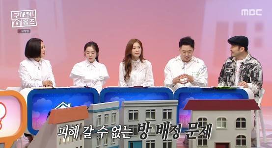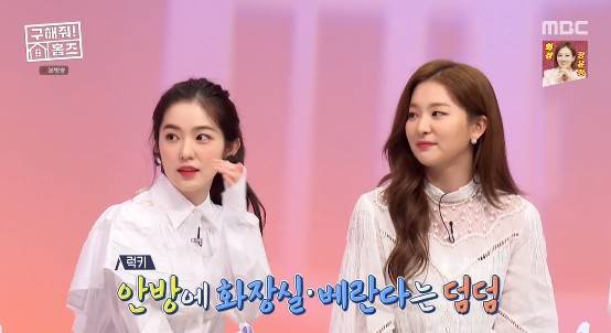 5일 MBC ‘구해줘 홈즈’에선 레드벨벳 아이린과 슬기가 출연했다. 숙소 방 배정을 어떻게 정하느냐는 질문에 슬기는 제비뽑기로 정한다며 자신은 작은 방을 쓰고 있다고 밝혔다. 작은 방을 쓰는 대신 거실 공간에 가구를 배치해 쓴다는 것. 이에 아이린은 “저는 안방을 쓴다. 안방에 화장실과 베란다까지 있다”고 덧붙였다.