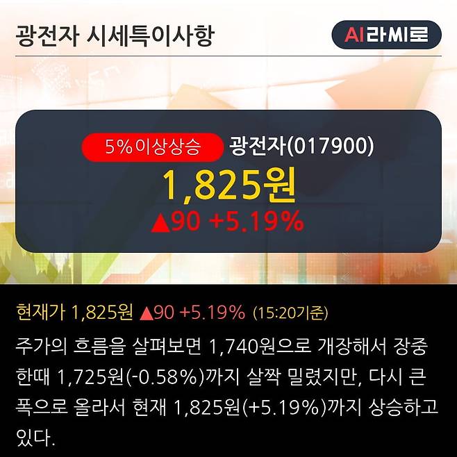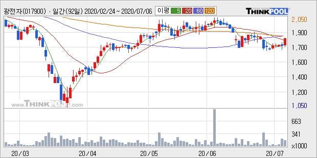 '광전자' 5% 이상 상승, 주가 20일 이평선 상회, 단기·중기 이평선 역배열