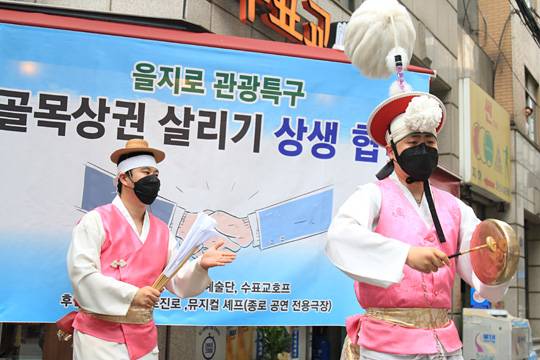 서울 중구 을지로3가 '관광특구'인 수표교 일대 상인들이 코로나19로 인해 위축된 상권 활성화를 도모하고 전통공연예술단, 뮤지컬 공연단과의 상생협력을 통한 골목상권 살리기에 적극 나섰다.