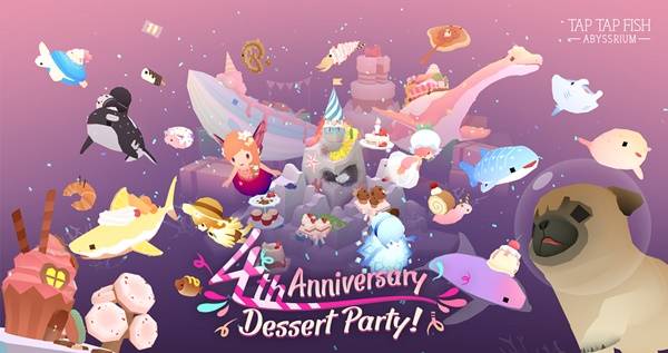 우선 '어비스리움' 4주년 기념 특별 콘텐츠, '4주년 축제의 바다' 테마와 '4살된 행복한 산호석' 코스튬, 그리고 염색약 '새콤달콤 디저트'가 추가됐다. 또, '도넛 바다돼지', '마카롱 거북이', '프라페 돌고래', '아이스크림 고래'를 포함한 신규 물고기 14종도 함께 선보였다.