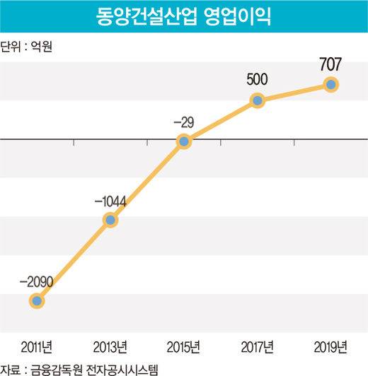 이랬던 동양건설산업이 2019년 확 살아났다. 동양건설산업은 지난해 영업이익 707억원과 순이익 524억원을 기록하며 한 해만에 대규모 흑자 전환에 성공했다.