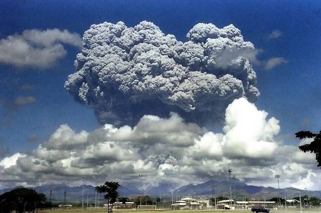 1991년 피나투보에서 화산이 폭발했다. 화산폭발지수로는 6이었는데, 이 정도면 화산폭발이 대기에 주는 영향이 상당한 정도다. 화산폭발로 엄청난 양의 화산재가 발생했고, 이 화산재들은 성층권으로 올라갔다. 당시 2,000만t에 달하는 이산화황이 성층권에서 태양 빛을 약 2.5%를 반사시켰고, 이후 2~3년 동안 전 지구 평균온도는 무려 0.2℃나 낮아졌다. 미 국립대기과학연구소의 연구에 따르면 성층권에 이산화황 등의 미세 입자들을 1년에 1,400만t 정도 뿌리면 이산화탄소 배출량을 줄이지 않더라도 2080년쯤엔 지구 기온이 현재와 비슷할 것으로 전망했다. 획기적인 시나리오인 것이다. 인공 기법을 사용해 화산재를 성층권에 깔면 지구의 기온은 떨어뜨리면서 피나투보나 엘치손화산처럼 자연화산이 폭발하면서 생기는 인명피해는 없앨 수 있다. 인공 화산재로 지구온난화 속도를 줄이겠다는 것이 터무니없는 소리는 아닌 것이다.
