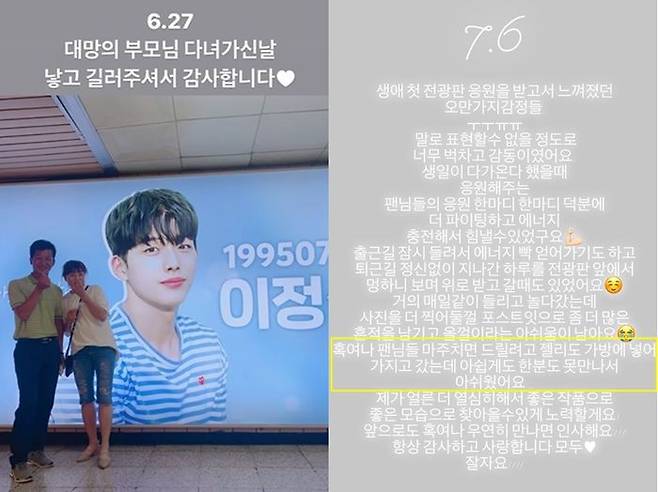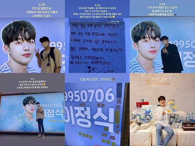 이정식은 지난 6일 자신의 인스타그램 스토리를 통해 생일을 맞이해 팬들이 준비한 전광판 이벤트에 대한 고마움을 전했습니다.