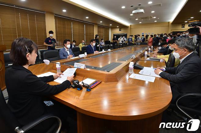 (경주=뉴스1) 최창호 기자 = 최윤희 문화체육관광부 2차관이 8일 오후 트라이애슬론 국가대표 고 최숙현 선수의 사망사건 진상 조사를 하기 위해 전 소속팀인 경북 경주시청을 방문한 자리에서 모두 발언을 하고 있다. 최 차관은 "이번 사건은 무관용의 원칙으로 엄중히 처리하겠다"고 말했다. 2020.7.8/뉴스1