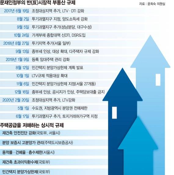 이날 미래통합당 경제혁신위원회 윤희숙 위원장은 "정부가 '강남 집값 잡기'를 정책목표로 설정하고 강남 집값이 조금이라도 상승하는 기미가 보이면 세금인상과 대출규제를 동원했다"고 지적하며 "특정 지역의 집값을 잡기 위해 거시적 규제를 동원하는 경우는 어떤 선진국에서도 보기 어렵다"고 비판했다.