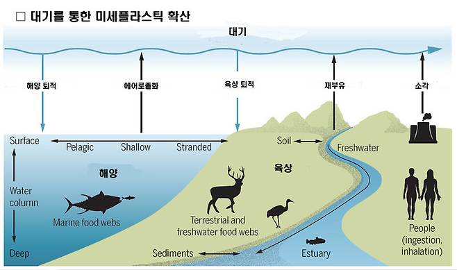 -2020년 6월 미국 유타대 연구팀은 과학저널 <사이언스>에 게재한 논문에서, 미국 서부 국립공원과 야생보호구역에 연간 1000t이 넘는 미세플라스틱이 바람이나 비를 타고 장거리 이동해 황사처럼 떨어져 쌓이고 있다고 보고했다. 이는 물병으로 쓰이는 페트병 1억2천만∼3억개에 해당하는 양이다.