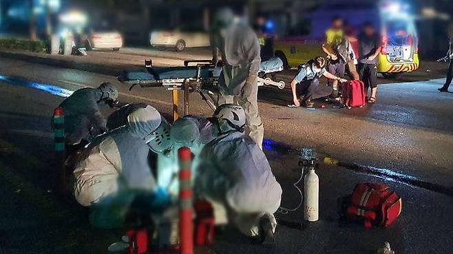 뒤에서 달려온 차량에 부딪힌 이들 3명은 크게 다쳐 병원으로 옮겨지는 도중 숨졌습니다.