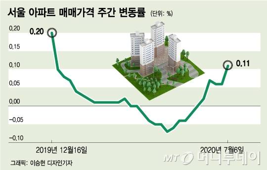 문재인 대통령이 연초에 "집값 원상 회복"을 강조했음에도 서울 아파트값이 7개월여 만에 최대 상승폭을 기록했다. 주간 아파트값 상승률이 0.11%로 12·16 대책 발표 직전 수준으로 돌아갔다. 두자릿수 상승률은 올 들어 처음이다.