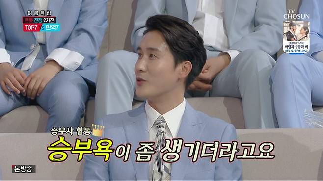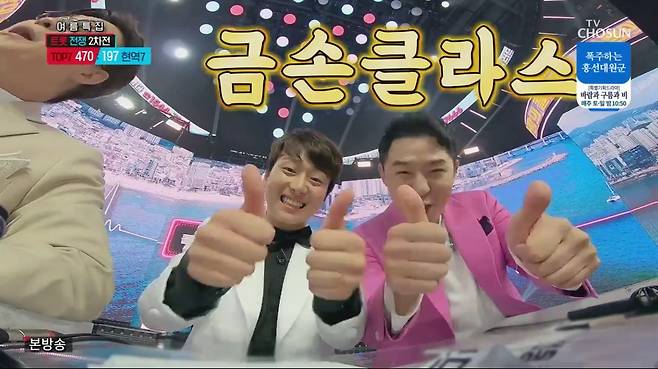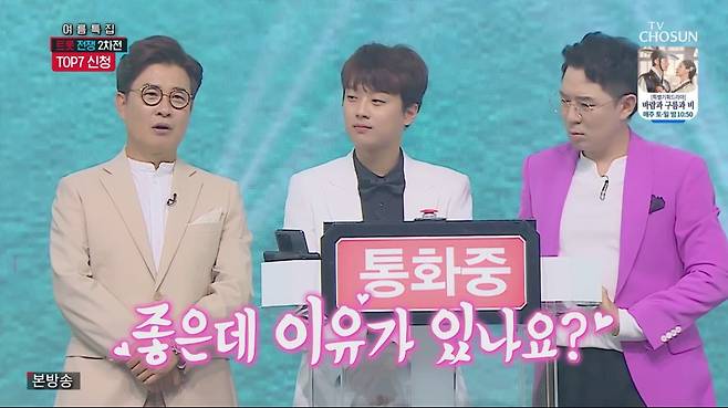 9일 방송된 TV조선 ‘신청곡을 불러드립니다-사랑의 콜센타’(이하 ‘사랑의 콜센타’)에서는 TOP7 VS 현역7 ‘신청곡 대결’로 美친 명승부를 펼쳤다.