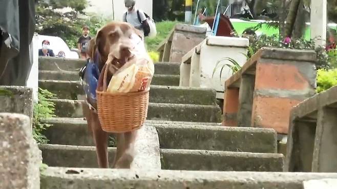 다음 소식입니다. 코로나19가 확산된 뒤에 여러 사람들이 배달 서비스 이용을 하고 있는데요, 남미 콜롬비아에서는 슈퍼마켓 배달을 돕고 있는 개가 화제를 모으고 있습니다.