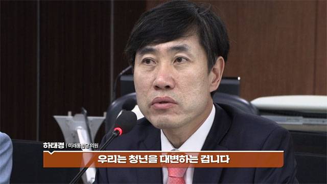 '로또취업'이라는 말을 만들어 '청년팔이' 비판을 받는 하태경 의원을 J가 찾아가 만나봤습니다. 이달 7일 미래통합당 공정채용 TF 의원들이 인천공항공사 현장조사에 나선 때였습니다. 일부에서 청년팔이 아니냐는 비판을 하는데 어떻게 생각하냐는 질문에 하 의원은 "우리가 대한민국 청년들을 대변해야지 누굴 대변하겠냐"라면서 "우리는 처음부터 끝까지 청년을 대변한다"고 답했습니다. 또 전체 청년이 아닌 일부 취업준비생 입장만 대변한다는 비판은 어떻게 생각하느냐고 물었더니 "대통령은 100% 국민을 대변하나? 원칙적으로 틀린 말이다, 그건 전체주의 사회나 가능한 것"이라고 말했습니다.