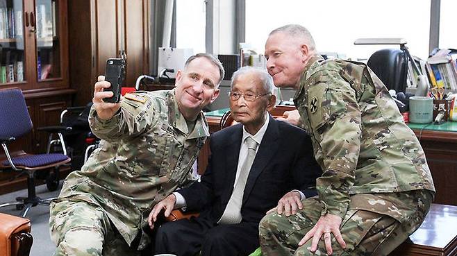 ▲ 주한미군 사령관, 백선엽 장군 생일 축하 방문 당시