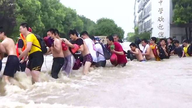 대입 시험이 하필 이때 열려 일부 지역에선 수험생들이 고사장에 헤엄쳐 가는 모습도 목격됐습니다.