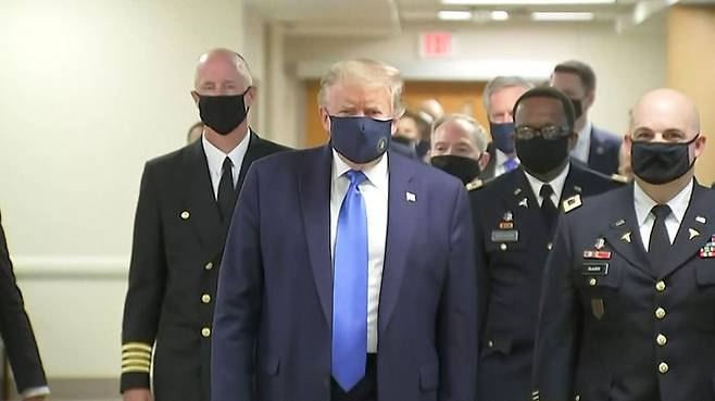 트럼프 대통령은 워싱턴 DC 외곽의 월터 리드 국립 군 의료센터를 방문하면서 마스크를 착용하고 부상을 입은 장병들과 의료 관계자들을 만났습니다.