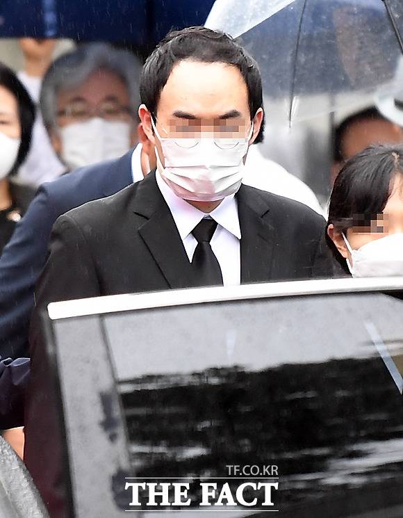 [더팩트ㅣ이새롬 기자] 박원순 서울시장의 발인이 13일 오전 서울대학교병원 장례식장에서 거행된 가운데, 고인의 아들 주신 씨가 운구차량에 탑승하고 있다.