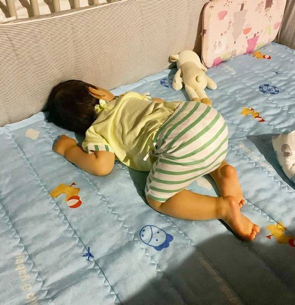 사진에는 침대에 엎드려 누운 채 숙면을 취하고 있는 강경준 아들의 모습이 담겼다.