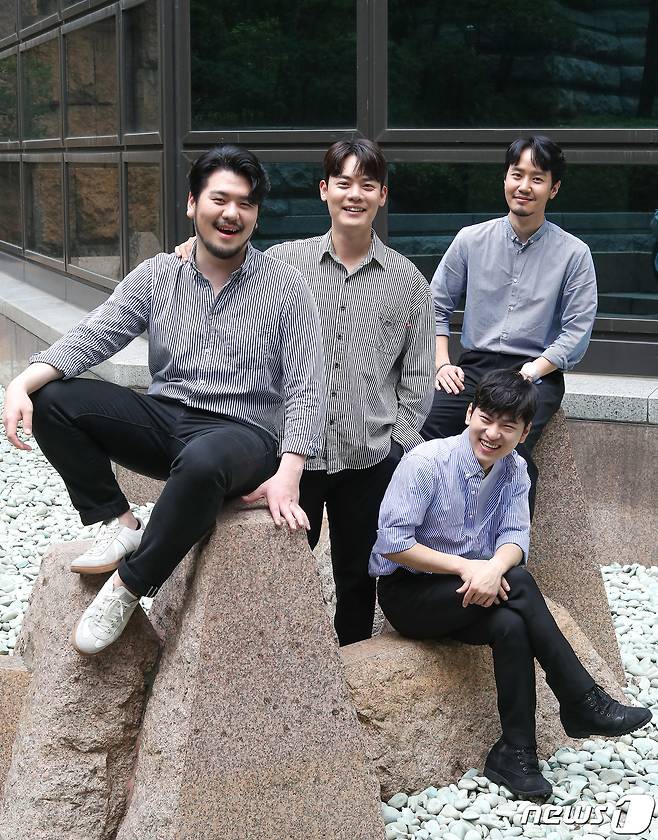 (서울=뉴스1) 김진환 기자 = JTBC '팬텀싱어3' 우승팀 라포엠의 정민성(왼쪽부터), 유채훈, 박기훈, 최성훈이 지난 8일 오전 서울 종로구 뉴스1 사옥에서 열린 인터뷰를 앞두고 포즈를 취하고 있다. 2020.7.14/뉴스1