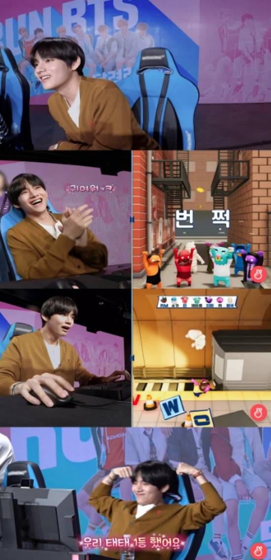 여러 번 진행된 연습게임 후 조작법을 숙지한 뷔는 본게임에서 우승까지 차지했다.