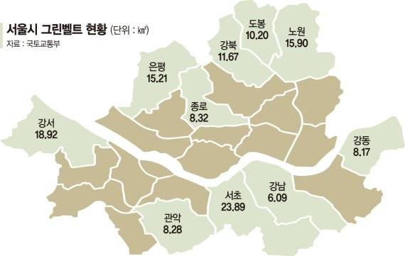 15일 관련 업계에 따르면 홍남기 경제부총리와 정부 주택공급대책TF 실무기획단이 주택 공급대책 일환으로 그린벨트 해제 검토를 공식화하면서 후보지에 관심이 쏠리고 있다. 정부가 서울의 그린벨트를 해제해 조성할 수 있는 택지는 강남의 보금자리 지구 근처 땅이 될 것으로 예상된다. 현재 서울의 개발제한구역 면적은 149.13㎢로 강남권에선 서초구가 23.88㎢로 가장 넓고 강동구(8.17㎢), 강남구(6.09㎢), 송파구(2.63㎢) 등 순이다. 서울 북쪽은 대부분 산이라 개발이 어려워 서초구 내곡동과 강남구 세곡동, 수서역 인근 등지로 이명박 정권 때 보금자리주택을 개발하고 남은 땅들이 최우선 후보로 거론된다. 시장에서는 "정부가 서울 내에서도 입지가 좋고 수요를 대거 흡수할 수 있는 곳에 공급을 늘리기 위해서는 결국 그린벨트를 푸는 수밖에 없을 것"이라는 관측이 나온다.