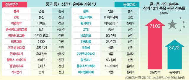 중국 증시가 최근 급등한 가운데 국내 개인투자자들인 '동학개미'와 중국 개인투자자인 '청년부추'가 사들인 중국 증시 상장 종목이 뚜렷하게 갈린 것으로 나타났다.