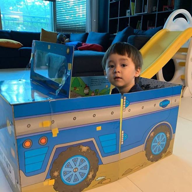 사진을 본 누리꾼들은 "너무 귀여워" "오늘은 벤틀리가 버스 운전사"라는 반응을 보였다.