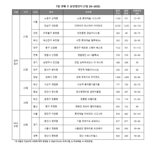 [분양캘린더] 7월 4주 전국 6,067가구 청약 접수.."민간택지 분양가 상한제 본격 시행"