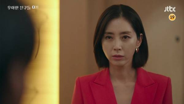 JTBC 금토드라마 <우아한 친구들>의 본격적인 이야기는 바로 이 지점부터 시작됐다. 남정해에게 의도적으로 접근한 주강산에 의해 그의 가정이 파탄 위기에 내몰리는 것. 아마도 대학시절 죽은 교수와 관련이 있을 법한 이 인물은 본격적인 복수를 시작한 모양새다. 그렇게 성폭력을 당한 남정해에게 주강산은 계속 만나자고 문자를 보냈고, 병원까지 찾아와 큰 소리로 "사랑한다"며 "사귀자"고 외치기도 했다.